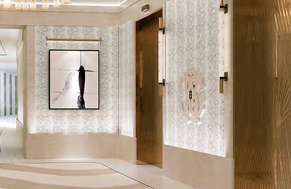 Step into opulence as the spectacular four-storey high lobby ladders up to a dazzling skylight. Arrive to the calm aura of an indoor waterfall and the accompanying water features all around this elegant space. It’s little surprise that the Cavalli Tower experiencemakes a lasting impression from the very first moment